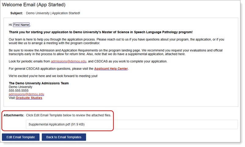 • Email Template Manager: View Attachments When you view a template on the Email Templates Manager page, a list of the attachments linked to that email template also displays.