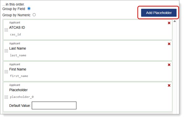 You can add a Placeholder field by clicking the Add Placeholder button on the right side above your chosen fields. See the Exporting Data via the Export Manager page for more guidance and best practices.